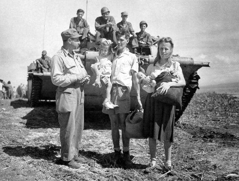 She also mentioned that when a Japanese machine gun opened up, "We hit the floor and prayed."