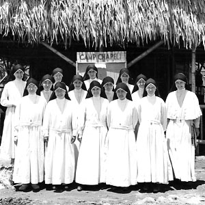 The camp doctor Dana Nance along with a handful of nurses, including The Sacred Eleven, did their best to take care of the internees' health needs, but it was a herculean task given their meager supplies and lack of support from the Japanese. By the end, seventy percent of the internees were suffering from beriberi, dysentery, and malnutrition. Working twelve hours a day, Nance and The Sacred Eleven treated an average of 200 patients a day, dealing with everything from the aforementioned tropical diseases to dehydration, broken bones to stitching up cuts. Dr. Nance even performed an appendectomy on a patient, without anesthetic, who lived! The nurses mixed tree sap to create bandage adhesive, made slings from donated scraps and used the tops of cut beer bottles to create patient "bells" which could be rung to get their attention.
