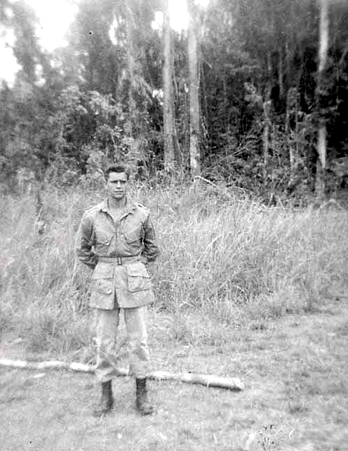 After our return from leave, we were transferred to Camp Stoneman in California. While there, we were trained in house-to-house battle techniques. On May 3, 1944, we sailed from San Francisco Bay into the Pacific Ocean, for a 24 day journey on the “Sea Pike”, which took us down the coast of South America, over to Australia, finally reaching New Guinea.