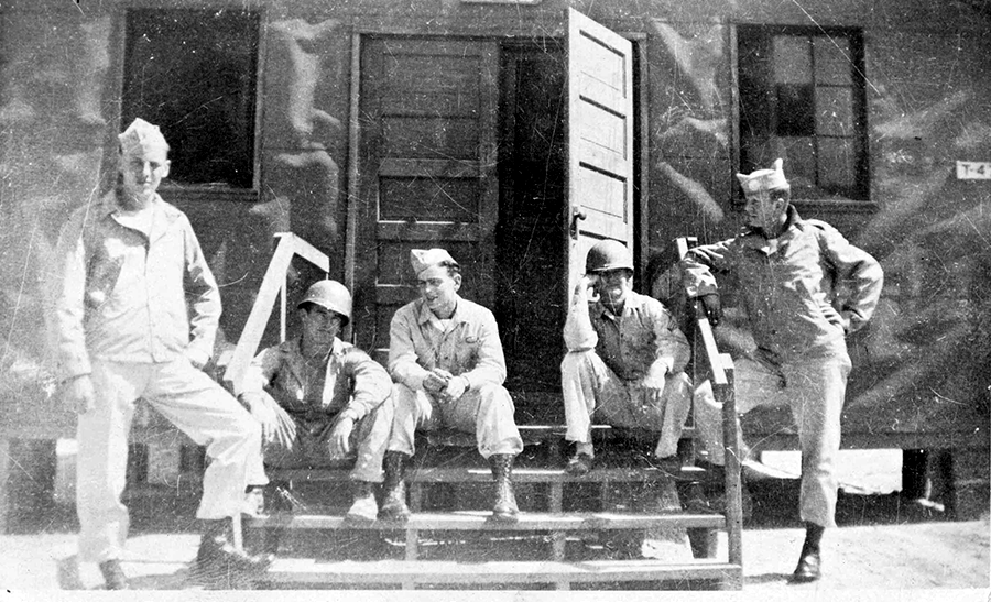 L to R: Cpl. William R. Walter, Thompson, Pvt. Bart A. Howey, Sgt. Robert F. Ingram, Pfc. Richard A. Goff at Camp Mackall (Photo by Willam Walter)